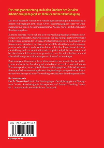 Das Buch bespricht Formen von Forschungsorientierung mit Berufsbezug in dualen Studiengängen der Sozialen Arbeit / Sozialpädagogik in Form von Studiengangkonzeptionen, hochschuldidaktischer Ansätze sowie institutionalisierter Beratungsangebote.