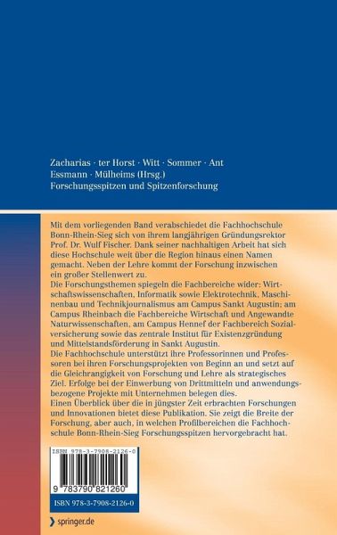 Mit dem vorliegenden Band verabschiedet die Fachhochschule Bonn-Rhein-Sieg sich von ihrem langjährigen Gründungsrektor Prof. Dr. Wulf Fischer. Dank seiner nachhaltigen Arbeit hat sich diese Hochschule weit über die Region hinaus einen Namen gemacht. Neben der Lehre kommt der Forschung inzwischen ein großerStellenwert zu.