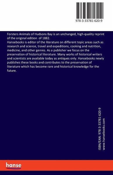Forsters Animals of Hudsons Bay is an unchanged, high-quality reprint of the original edition of 1882.