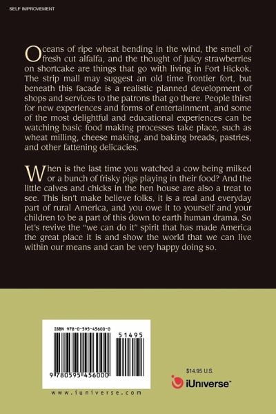 Oceans of ripe wheat bending in the wind, the smell of fresh cut alfalfa, and the thought of juicy strawberries on shortcake are things that go with living in Fort Hickok. The strip mall may suggest an old time frontier fort, but beneath this facade is a realistic planned development of shops and services to the patrons that go there. People thirst for new experiences and forms of entertainment, and some of the most delightful and educational experiences can be watching basic food making processes take place, such as wheat milling, cheese making, and baking breads, pastries, and other fattening delicacies. When is the last time you watched a cow being milked or a bunch of frisky pigs playing in their food? And the little calves and chicks in the hen house are also a treat to see. This isn't make believe folks, it is a real and everyday part of rural America, and you owe it to yourself and your children to be a part of this down to earth human drama. So let's revive the "we can do it" spirit that has made America the great place it is and show the world that we can live within our means and can be very happy doing so.