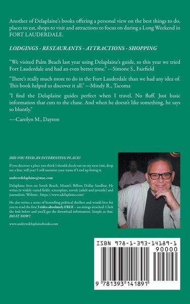 Another of Delaplaine's books offering a personal view on the best things to do, places to eat, shops to visit and attractions to focus on during a Long Weekend in FORT LAUDERDALE. LODGINGS - RESTAURANTS - ATTRACTIONS - SHOPPING "We visited Palm Beach last year using Delaplaine's guide, so this year we tried Fort Lauderdale and had an even better time." ---Simone S., Fairfield "There's really much more to do in the Fort Lauderdale than we had any idea of. This book helped us discover it all." ---Mindy R., Tacoma "I find the Delaplaine guides perfect when I travel. No fluff. Just basic information that cuts to the chase. And when he doesn't like something, he says so bluntly." ---Carolyn M., Dayton