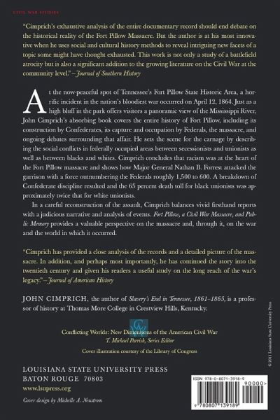 At the now-peaceful spot of Tennessee's Fort Pillow State Historic Area, a horrific incident in the nation's bloodiest war occurred on April 12, 1864. Just as a high bluff in the park offers visitors a panoramic view of the Mississippi River, John Cimprich's absorbing book affords readers a new vantage on the American Civil War as viewed through the lens of the Confederate massacre of unionist and black Federal soldiers at Fort Pillow. Cimprich covers the entire history of Fort Pillow, including its construction by Confederates, its capture and occupation by federals, the massacre, and ongoing debates surrounding that affair. He sets the scene for the carnage by describing the social conflicts in federally occupied areas between secessionists and unionists as well as between blacks and whites. In a careful reconstruction of the assault itself, Cimprich balances vivid firsthand reports with a judicious narrative and analysis of events. He shows how Major General Nathan B. Forrest attacked the garrison with a force outnumbering the Federals roughly 1,500 to 600, and a breakdown of Confederate discipline resulted. The 65 percent death toll for black unionists was approximately twice that for white unionists, and Cimprich concludes that racism was at the heart of the Fort Pillow massacre. Fort Pillow, a Civil War Massacre, and Public Memory serves as a case study for several major themes of the Civil War: the great impact of military experience on campaigns, the hardships of military life, and the trend toward a more ruthless conduct of war. The first book to treat the fort's history in full, it provides a valuable perspective on the massacre and, through it, on the war and the world in which it occurred.