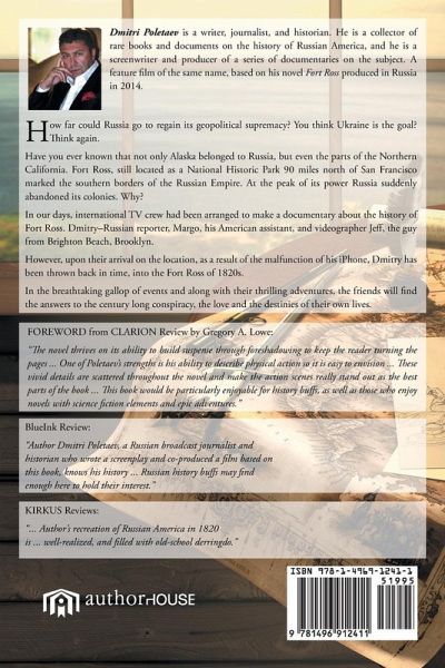 Is it true that not only Alaska, but other huge territories of the American continent were Russian? Yes, its stretched all the way down to Northern California. And Fort Ross, Russian fortress and settlement of the early 19?th century, which still located 90 miles north of San Francisco, on the banks of Russian river at that time marked the southern border of the Russian Empire. At the peak of its power Russia suddenly abandoned its colonies. Why? What happened? In our days, an international TV crew arrived at "Fort Ross National Historic Park" to make a documentary. Dmitry?Russian reporter already famous in his country, Margo, long legged sound engineer, very pretty, and very independent American girl in her twenties, and videographer Jeff, the guy from Brighton Beach, Brooklyn, same age as Margo?meet in New York and soon became friends. As a result of the mysterious anomaly, Dmitry was thrown into the past. Into the Fort Ross of 1820s, where he saw a thriving international community of the colonists: Russians, Aleuts, Native Americans, Spaniards. Ripening field of rye, peach orchards, vineyards, flocks of sheep and herds of cattle. In the bay, merchant's ships at anchor, waiting for the goods to be loaded?paradise and nothing else. To his surprise, he found out that his ability to travel in Time happened because of the strange malfunctioning of his iPhone. How great it would be to take a few real historical shoots from the past! However, soon he will realize that what they have in their hands is much more serious than just an opportunity to make an unprecedented documentary footage. Why not try to change the Future itself? But in favor of what country, Russia or America? It's not an easy question to answer. Dmitry, taken aback by this unknown to him chapter of Russian history, sees the new opportunities for Mother Russia. Margo, as an American, is very disturbed. She, who has an Indian blood in her veins, knows pretty well what awaits her people. On the other hand, she fascinated by the peaceful coexistence of Russians and local Kashaya tribe. As for Jeff, he is just torn apart between his pledge to his new homeland, his Russian origin, his new friend and his new love for Margo. Not being able to resolve all these issues at once, friends decided to disguise themselves as Franciscan friars and Margo as an Indian girl, and go for the brief exploration into the Past. And return to modern time, as quickly as possible. But Fate had other plans for them.