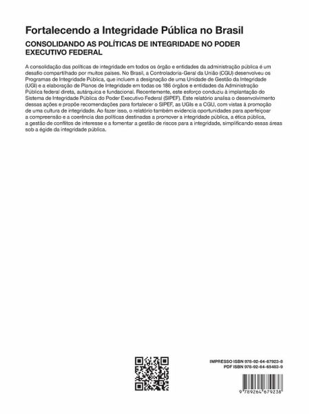 A consolidação das políticas de integridade em todos os órgão e entidades da administração pública é um desafio compartilhado por muitos países. No Brasil, a Controladoria-Geral da União (CGU) desenvolveu os Programas de Integridade Pública, que incluem a designação de uma Unidade de Gestão da Integridade (UGI) e a elaboração de Planos de Integridade em todas os 186 órgãos e entidades da Administração Pública federal direta, autárquica e fundacional.