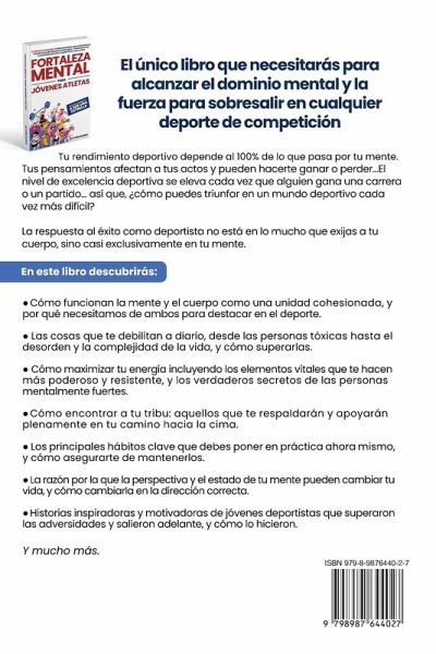 Tu rendimiento deportivo depende al 100% de lo que pasa por tu mente. Tus pensamientos afectan a tus actos y pueden hacerte ganar o perder... ¡Quieres ser el mejor de los mejores! El nivel de excelencia deportiva se eleva cada vez que alguien gana una carrera o un partido... así que, ¿cómo puedes triunfar en un mundo deportivo cada vez más difícil? La respuesta al éxito como deportista no está en lo mucho que exijas a tu cuerpo, sino casi exclusivamente en tu mente. En este libro descubrirás: ¿ Cómo funcionan la mente y el cuerpo como una unidad cohesionada, y por qué necesitamos de ambos para destacar en el deporte¿ Cómo maximizar tu energía incluyendo los elementos vitales que te hacen más poderoso y resistente, y los verdaderos secretos de las personas mentalmente fuertes¿ Las cosas que te debilitan a diario, desde las personas tóxicas hasta el desorden y la complejidad de la vida, y cómo superarlas¿ Lo que necesitas para construir un invencible sentido de autoestima que te mantendrá en buena posición en todos los niveles de la vidä Los principales hábitos clave que debes poner en práctica ahora mismo, y cómo asegurarte de mantenerlos¿ La razón por la que la perspectiva y el estado de tu mente pueden cambiar tu vida, y cómo cambiarla en la dirección correctä Cómo encontrar a tu tribu: aquellos que te respaldarán y apoyarán plenamente en tu camino hacia la cima.¿ Cómo perfeccionar tus emociones como fuente de energía para alimentar tu rendimiento deportivo¿ Historias inspiradoras y motivadoras de jóvenes deportistas que superaron las adversidades y salieron adelante, y cómo lo hicieron Y mucho más. Todos los entrenadores y mentores deportivos profesionales saben que es vital tener la cabeza bien puesta y meterla en el partido. Aprender esta habilidad para nivelar tu mente, tus emociones y todo tu enfoque del deporte, revolucionará tus capacidades deportivas. Este es el único libro que necesitarás para alcanzar el dominio mental y la fortaleza que necesitas para triunfar en el campo deportivo. Descubre cómo reforzar tu fortaleza mental para triunfar cuando más lo necesites.