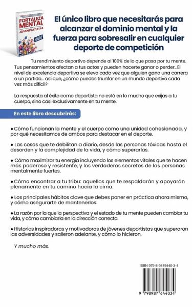 Tu rendimiento deportivo depende al 100% de lo que pasa por tu mente. Tus pensamientos afectan a tus actos y pueden hacerte ganar o perder... ¡Quieres ser el mejor de los mejores! El nivel de excelencia deportiva se eleva cada vez que alguien gana una carrera o un partido... así que, ¿cómo puedes triunfar en un mundo deportivo cada vez más difícil? La respuesta al éxito como deportista no está en lo mucho que exijas a tu cuerpo, sino casi exclusivamente en tu mente. En este libro descubrirás: ¿ Cómo funcionan la mente y el cuerpo como una unidad cohesionada, y por qué necesitamos de ambos para destacar en el deporte¿ Cómo maximizar tu energía incluyendo los elementos vitales que te hacen más poderoso y resistente, y los verdaderos secretos de las personas mentalmente fuertes¿ Las cosas que te debilitan a diario, desde las personas tóxicas hasta el desorden y la complejidad de la vida, y cómo superarlas¿ Lo que necesitas para construir un invencible sentido de autoestima que te mantendrá en buena posición en todos los niveles de la vidä Los principales hábitos clave que debes poner en práctica ahora mismo, y cómo asegurarte de mantenerlos¿ La razón por la que la perspectiva y el estado de tu mente pueden cambiar tu vida, y cómo cambiarla en la dirección correctä Cómo encontrar a tu tribu: aquellos que te respaldarán y apoyarán plenamente en tu camino hacia la cima.¿ Cómo perfeccionar tus emociones como fuente de energía para alimentar tu rendimiento deportivo¿ Historias inspiradoras y motivadoras de jóvenes deportistas que superaron las adversidades y salieron adelante, y cómo lo hicieron Y mucho más. Todos los entrenadores y mentores deportivos profesionales saben que es vital tener la cabeza bien puesta y meterla en el partido. Aprender esta habilidad para nivelar tu mente, tus emociones y todo tu enfoque del deporte, revolucionará tus capacidades deportivas. Este es el único libro que necesitarás para alcanzar el dominio mental y la fortaleza que necesitas para triunfar en el campo deportivo. Descubre cómo reforzar tu fortaleza mental para triunfar cuando más lo necesites.