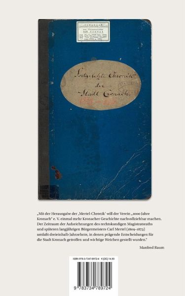 "Mit der Herausgabe der 'Mertel-Chronik' will der Verein "1000 Jahre Kronach" e. V. einmal mehr Kronacher Geschichte nachvollziehbar machen. Der Zeitraum der Aufzeichnungen des rechtskundigen Magistratsraths und späteren langjährigen Bürgermeisters Carl Mertel (1809-1873) umfaßt dreieinhalb Jahrzehnte, in denen prägende Entscheidungen für die Stadt Kronach getroffen und wichtige Weichen gestellt wurden."Manfred Raum