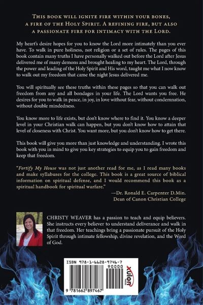 Are there really demons? Can they really bring oppression to Christians? Do you lack proper authority and victory in life? Do you feel defeated? Are you desperately seeking God for more and yet something is still missing? Other Christians speak of knowing God intimately. They have victory, they see their prayers answered, they have such joy and peace, and their life seems all put together. Do you wonder why you haven't been able to attain that? Does God love you less? Are you less important? Have you lost hope? This book will answer all these questions and so much more! You will learn infallible keys that will heal, deliver, set you free, and set your life on course to walking in victory and wholeness as Jesus intended for you. You will supernaturally learn to walk intimately with the Holy Spirit to find vision and direction for your life. Christy Weaver is dedicated to teach, train, and equip believers to passionately pursue a deeper relationship with the Holy Spirit guided by the Holy Scriptures. She believes every believer should walk in victory and in the fullness that Christ has promised. She believes every believer should actively see, hear, and know the Holy Spirit intimately, being led by the Holy Spirit, walking in the presence of the Lord, and carrying the glory of God as witnesses to others in their own lives. She actively serves on the worship team, the altar/prayer team, and is a prayer warrior at her home church in Des Moines. She is currently working toward her Bachelor Degree at Canon Christian College. She presently lives in Des Moines, Iowa with her husband and two teenage children. She enjoys her quiet time with the Lord, spending time with family and friends, traveling, playing games, and scrapbooking.