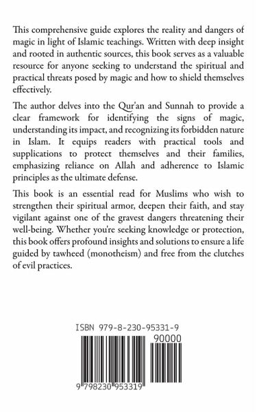 This comprehensive guide explores the reality and dangers of magic in light of Islamic teachings. Written with deep insight and rooted in authentic sources, this book serves as a valuable resource for anyone seeking to understand the spiritual and practical threats posed by magic and how to shield themselves effectively. The author delves into the Qur'an and Sunnah to provide a clear framework for identifying the signs of magic, understanding its impact, and recognizing its forbidden nature in Islam. It equips readers with practical tools and supplications to protect themselves and their families, emphasizing reliance on Allah and adherence to Islamic principles as the ultimate defense. This book is an essential read for Muslims who wish to strengthen their spiritual armor, deepen their faith, and stay vigilant against one of the gravest dangers threatening their well-being. Whether you're seeking knowledge or protection, this book offers profound insights and solutions to ensure a life guided by tawheed (monotheism) and free from the clutches of evil practices.