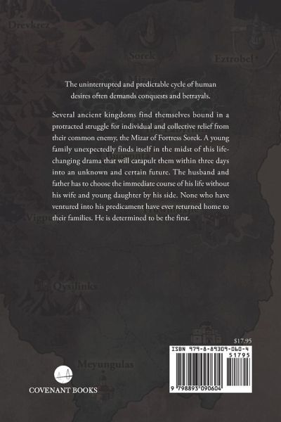 The uninterrupted and predictable cycle of human desires often demands conquests and betrayals. Several ancient kingdoms find themselves bound in a protracted struggle for individual and collective relief from their common enemy, the Mizar of Fortress Sorek. A young family unexpectedly finds itself in the midst of this life-changing drama that will catapult them within three days into an unknown and certain future. The husband and father has to choose the immediate course of his life without his wife and young daughter by his side. None who have ventured into his predicament have ever returned home to their families. He is determined to be the first.