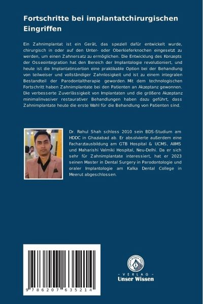 Ein Zahnimplantat ist ein Gerät, das speziell dafür entwickelt wurde, chirurgisch in oder auf den Unter- oder Oberkieferknochen eingesetzt zu werden, um einen Zahnersatz zu ermöglichen. Die Entwicklung des Konzepts der Osseointegration hat den Bereich der Implantologie revolutioniert, und heute ist die Implantatinsertion eine praktikable Option bei der Behandlung von teilweiser und vollständiger Zahnlosigkeit und ist zu einem integralen Bestandteil der Parodontaltherapie geworden. Mit dem technologischen Fortschritt haben Zahnimplantate bei den Patienten an Akzeptanz gewonnen. Die verbesserte Zuverlässigkeit von Implantaten und die größere Akzeptanz minimalinvasiver restaurativer Behandlungen haben dazu geführt, dass Zahnimplantate heute die erste Wahl für die Behandlung von Patienten sind.
