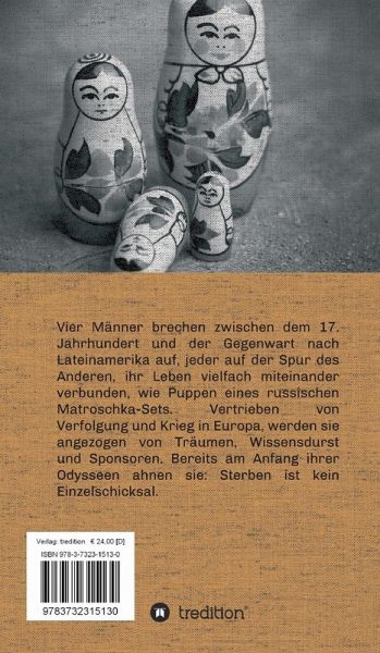 Zwischen dem 17. Jahrhundert und der Gegenwart brechen junge Männer auf Spurensuche nach Lateinamerika auf. Deren Schicksale sind vielfach miteinander verbunden, wie Puppen eines Matroschka-Sets.