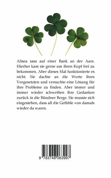 Alisea saß auf einer Bank an der Aare. Hierher kam sie gerne um ihren Kopf frei zu bekommen. Aber dieses Mal funktionierte es nicht. Sie dachte an die Worte ihres Vorgesetzten und versuchte eine Lösung für ihre Probleme zu finden. Aber immer und immer wieder schweiften ihre Gedanken zurück in die Bündner Berge. Sie musste sich eingestehen, dass all die Gefühle von damals wieder da waren.