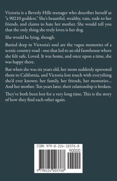 Victoria is a Beverly Hills teenager who describes herself as "a 90210 goddess." She's beautiful, wealthy, vain, rude to her friends, and claims to hate her mother. She would tell you that the only thing she truly loves is her dog. She would be lying, though. Buried deep in Victoria's soul are the vague memories of a scenic country road - one that led to an old farmhouse where she felt safe. Loved. It was home, and once upon a time, she was happy there. But when she was six years old, her mom suddenly uprooted them to California, and Victoria lost touch with everything she'd ever known: her family, her friends, her memories... And her mother. Ten years later, their relationship is broken. They've both been lost for a very long time. This is the story of how they find each other again.
