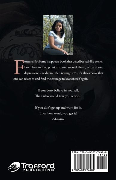 Fortune Not Fame is a poetry book that describes real-life events. From love to lust, physical abuse, mental abuse, verbal abuse, depression, suicide, murder, revenge, etc., it's also a book that one can relate to and find the courage to love oneself again. If you don't believe in yourself, Then who would take you serious? If you don't get up and work for it, Then how would you get it? -Shantise