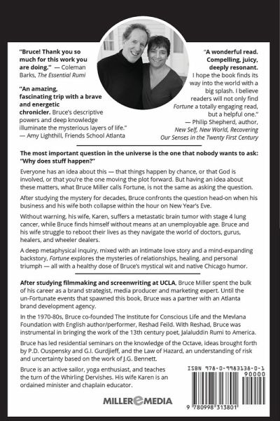The most important question in the universe is the one that nobody wants to ask: "Why does stuff happen?" Everyone has an idea about this - that things happen by chance, or that God is involved, or that you're the one moving the plot forward. But having an idea about these matters, what Bruce Miller calls Fortune, is not the same as asking the question. After studying the mystery for decades, Bruce confronts the question head-on when his business and his wife both collapse within the hour on New Year's Eve. Without warning, his wife, Karen, suffers a metastatic brain tumor with stage 4 lung cancer, while Bruce finds himself without means at an unemployable age. Bruce and his wife struggle to reboot their lives as they navigate the world of doctors, gurus, healers, and wheeler dealers. A deep metaphysical inquiry, mixed with an intimate love story and a mind-expanding backstory, Fortune explores the mysteries of relationships, healing, and personal triumph - all with a healthy dose of Bruce's mystical wit and native Chicago humor.
