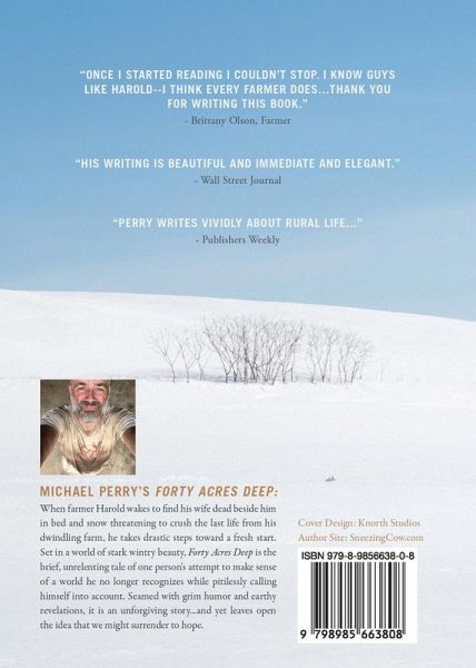 When farmer Harold wakes to find his wife dead beside him in bed and snow threatening to crush the last life from his dwindling farm, he takes drastic steps toward a fresh start. Set in a world of stark wintry beauty, Forty Acres Deep is the brief, unrelenting tale of one person's attempt to make sense of a world he no longer recognizes while pitilessly calling himself into account. Seamed with grim humor and earthy revelations, it is an unforgiving story...and yet leaves open the idea that we might surrender to hope.