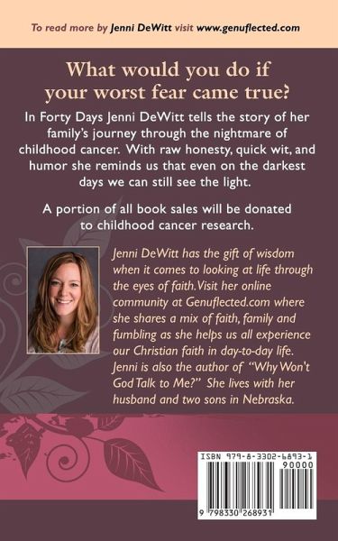 Travel with Jenni DeWitt through the first forty days after her son's childhood cancer diagnosis and share with her in the battle between faith and anxiety. With Jenni's raw honesty and quick wit, you'll feel like you are right there with her as she weather's the storms of childhood cancer with less grace and more lessons to be learned than she'd maybe prefer to admit. Through it all, you'll learn, with Jenni, there can still be a little light, even on the darkest days.