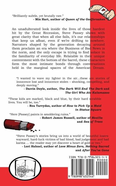 An unadulterated look inside the lives of those hardest hit by the Great Recession, Steve Passey shows with great clarity that when all else fails, it's our relationships that keep us afloat, even if we're drifting to nowhere. Narrators shaped by the generation decaying around them proclaim an era where the Business of Bad News is the norm, and the only escape is trying to find solace in the familiarity of everyday life. Relatable in their unique contentment with the bottom of the barrel, these characters form the most intimate bonds through conversations held in the marginal spaces of the American Dream.