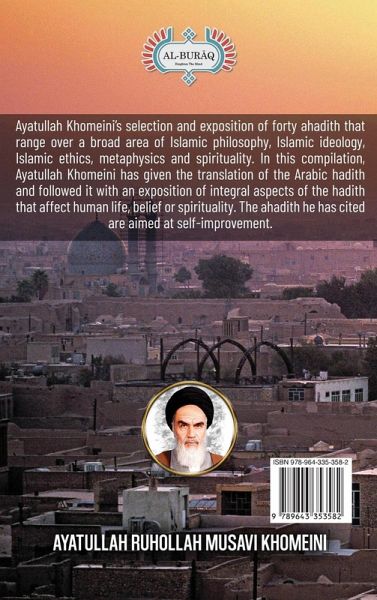 Imam Khomeini's selection and exposition of Forty ahadith that range over a broad area of Islamic philosophy, ideology, ethics, metaphysics and spirituality. In this compilation, Imam Khomeini has given the translation of the Arabic hadith and followed it up with exposition of integral aspects of the hadith that affect human life, belief or spirituality. The very first hadith is on Jihad of the self. The ahadith he has cited aim at self-improvement in terms of knowing Allah SWT, The Prophet SAWW and Aimmah AS, elevating oneself through self-control and self-discipline and shun pride (kibr), ostentation/show off (riya), self-conceit (ujb), envy (hasad), love of the world, anger (ghadhab), prejudice (asabiyyah) and hypocrisy (nifaq). In this collection, the author has included the ahadith that help us elevate our status through intellect (tafakkur), trust in God (tawakkul), man's natural instincts to seek out God, meeting with God and to fear (khawf) Him. Furthermore, the author has included ahadith that touch upon our sacred faith in Allah SWT, The Prophet SAWW and the Aimmah AS, the concepts of Attributes and Knowledge of God, The Meaning of God's Creation of Adam in His image, difference between Good and Evil. The collection has also included ahadith on the merits of the seekers of knowledge, pursuit knowledge, prayers and concentration, and Classification of Sciences.