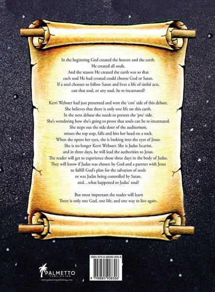 In the beginning God created the heaven and the earth. He created all souls. And the reason He created the earth was so that each soul He had created could choose God or Satan. If a soul chooses to follow Satan and lives a sinful life, can that soul, or any soul, be re-incarnated? Kerri Webster had just presented and won the 'con' side of this debate. She believes that there is only one life on this earth. In the next debate she needs to present the 'pro' side. She's wondering how she's going to prove that souls can be re-incarnated when she steps out the side door of the auditorium, misses the top step, falls, and hits her head on a rock. When she opens her eyes, she is looking into the eyes of Jesus. She is no longer Kerri Webster. She is Judas Iscariot, who in three days will lead the authorities to Jesus. The reader will get to experience those three days in the body of Judas. They will know if Judas was chosen by God and a partner with Jesus to fulfill God's plan for the salvation of souls or was Judas being controlled by the devil, and what happened to Judas' soul? While in this state of mind, God reveals to Kerri facts of a document hidden all those years ago that give the details of what really transpired between Caiphas and Judas, and how Judas became the most notorious villian of all times. The consternation of Kerri, that God has not revealed this document to the world, is the thread that weaves through the 'Trilogy of Exoneration'. Also woven into the pages of these books is the overall truth that there is: Only one God, one life, and one Way to live again.