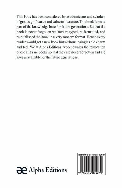 This book has been considered by academicians and scholars of great significance and value to literature. This book forms a part of the knowledge base for future generations. So that the book is never forgotten we have re-typed, re-formatted, and re-published the book in a very modern format. Hence every reader would get a new book but without losing its old charm and feel. We at Alpha Editions, work towards the restoration of old and rare books so that they are never forgotten and are always available for the future generations.