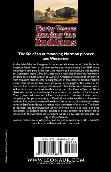 The life of an outstanding Mormon pioneer and Westerner As the title of this book suggests its author recalls a long period of his life in the American South- West of the nineteenth century commencing from 1847 when, travelling to take part in the war with Mexico as a volunteer, he was attacked by Comanche Indians. His first association with the Mormons, following a shooting accident, followed in 1850. Native American Indians and the Mormons from this point form the interlocking threads of this colourful autobiography. It is clear that the author has much sympathy for the plight of the Indians of his time and had frequent dealings with various tribes. These were, however, often violent times and the book touches upon the Echo Canyon War, the Black Hawk War and Apache outbreaks. Later, as an active member of the Mormon Church, Jones led a rescue of Mormon hand-cart company pioneers which necessitated his party wintering at Devil's Gate under conditions of extreme hardship. The incident promoted much acclaim as an act of undoubted selfless heroism. Significantly Jones is credited with translation of selections 'The Book of Mormon' into Spanish, leading the first Mormon mission to Mexico and the foundation (at Brigham Young's behest) of a new settlement originally called Jonesville, in the Salt River Valley Arizona which is now incorporated into the city of Mesa, Arizona. Leonaur editions are newly typeset and are not facsimiles; each title is available in softcover and hardback with dustjacket.