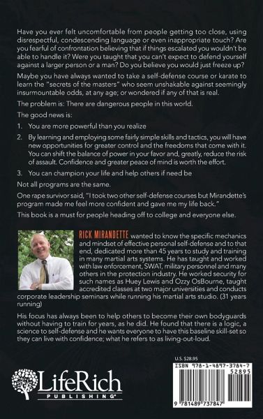 Have you ever felt uncomfortable from people getting too close, using disrespectful, condescending language or even their uninvited, inappropriate touching? Are you fearful of confrontation believing that if things escalated you wouldn't be able to handle it? Were you taught that you can't expect to defend yourself against a larger person or a man? Do you believe you would just freeze up? Maybe you've always wanted to take a self-defense course or karate to learn the secrets of the masters who seem unshakable against seemingly insurmountable odds, at any age, or wondered if any of that is real. Good news: There are some simple skills and tactics that you can employ to gain the advantage, shift the balance of power in your favor and greatly reduce the risk of assault or injury. You can take charge. You can move from fear to freedom. This book shows you how. One rape survivor said, "I took two other self-defense courses but Mirandette's program gave me my life back." One corporate leadership company president said: "This program guides people through a process of discovery that frees them from a variety of self-limiting assumptions to see grander visions and new possibilities for personal and professional transformation." Founder of Bartell &Bartell, Ltd, Center for Executive Assessment and Development This book is a must for people heading off to college and everyone else.