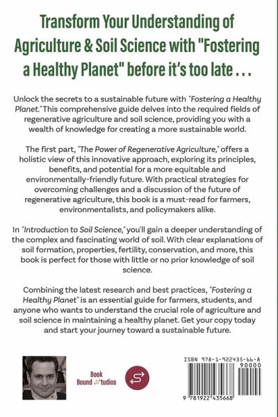 "Transform Your Understanding of Agriculture & Soil Science with "Fostering a Healthy Planet" Looking for an insightful and engaging guide to regenerative agriculture and soil science? "Fostering a Healthy Planet" is your 2-in-1 collection, providing essential knowledge for creating a sustainable future. From "The Power of Regenerative Agriculture:"It provides a holistic view of regenerative agriculture, covering this sustainable approach's principles, history, and benefits. It explores the environmental, economic, and social impacts of regenerative agriculture, highlighting the potential for this approach to create a more sustainable and equitable future. It addresses the challenges and barriers to implementing regenerative agriculture, offering practical solutions and strategies for overcoming these challenges. It discusses the future of regenerative agriculture, considering its role in shaping a more sustainable and resilient food system. It is written in an accessible and engaging style, making it a valuable resource for farmers, environmentalists, policymakers, and anyone interested in the future of food and farming. From "Introduction to Soil Science:"This book provides a detailed and easy-to-understand overview of the complex world of soil science. It covers a wide range of topics, including soil formation and classification, physical, chemical, and biological properties of soil, fertility and nutrient management, erosion and conservation, and soil management. This book is written in an accessible style, making it suitable for readers with little or no prior knowledge of soil science. Distinct from other resources, this 2-in-1 collection brings together the latest research and practices, making it an essential guide for farmers, students, and anyone seeking to understand the critical role agriculture and soil science play in maintaining a healthy planet. Take the first step towards a more sustainable future and get your copy of "Fostering a Healthy Planet" today!