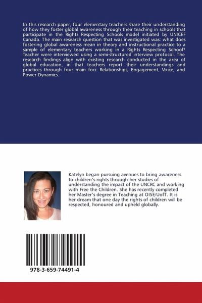 In this research paper, four elementary teachers share their understanding of how they foster global awareness through their teaching in schools that participate in the Rights Respecting Schools model initiated by UNICEF Canada. The main research question that was investigated was: what does fostering global awareness mean in theory and instructional practice to a sample of elementary teachers working in a Rights Respecting School? Teacher were interviewed using a semi-structured interview protocol. The research findings align with existing research conducted in the area of global education, in that teachers report their understandings and practices through four main foci: Relationships, Engagement, Voice, and Power Dynamics.