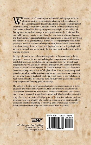 With awareness of both the opportunities and challenges presented by globalization, there is a growing trend among colleges and universities across the country to commit goals and resources to the concept of internationalizing their campuses. This can occur in a number of different ways but a common thread involves exploring the concept of global citizenship and finding ways to embed this concept in undergraduate curricula. For faculty, this may call for moving out of a presumed comfort zone in the traditional classroom and determining new approaches to teaching a generation of students who will live and work in a more global context. A method for accomplishing this work that is growing in popularity involves offering short-term, faculty-led field courses to international settings. In fact, today more college students are participating in such short-term study abroad opportunities than the more traditional semester and/or year-long programs. Faculty and administrators who want to capitalize on short-term, study abroad programs as a means for internationalizing their campuses need practical resources to help them realize this challenging but important goal. They not only need support in developing the course curricula and logistics, but also in constructing authentic means for assessing the multi-faceted learning that occurs. Short-term international programs, when carefully planned and executed, engage the participants (both students and faculty) in unique learning experiences that can involve service, research, and critical analysis of what it truly means to be a global citizen. Such work helps define the somewhat nebulous but worthy goals of internationalizing campuses and fostering global citizenship. The authors of this text are professional educators with deep experience in global education and curriculum development. They offer a valuable resource for the development, execution and assessment of faculty-led international field courses that is at once theoretical, practical and motivational. Whether readers are considering offering an international field program for the first time and need guidance; are veteran field course leaders who would like to take their work to the next level; or are administrators attempting to encourage and provide needed support for faculty-led international programs, this book will prove invaluable.