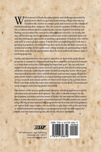 With awareness of both the opportunities and challenges presented by globalization, there is a growing trend among colleges and universities across the country to commit goals and resources to the concept of internationalizing their campuses. This can occur in a number of different ways but a common thread involves exploring the concept of global citizenship and finding ways to embed this concept in undergraduate curricula. For faculty, this may call for moving out of a presumed comfort zone in the traditional classroom and determining new approaches to teaching a generation of students who will live and work in a more global context. A method for accomplishing this work that is growing in popularity involves offering short-term, faculty-led field courses to international settings. In fact, today more college students are participating in such short-term study abroad opportunities than the more traditional semester and/or year-long programs. Faculty and administrators who want to capitalize on short-term, study abroad programs as a means for internationalizing their campuses need practical resources to help them realize this challenging but important goal. They not only need support in developing the course curricula and logistics, but also in constructing authentic means for assessing the multi-faceted learning that occurs. Short-term international programs, when carefully planned and executed, engage the participants (both students and faculty) in unique learning experiences that can involve service, research, and critical analysis of what it truly means to be a global citizen. Such work helps define the somewhat nebulous but worthy goals of internationalizing campuses and fostering global citizenship. The authors of this text are professional educators with deep experience in global education and curriculum development. They offer a valuable resource for the development, execution and assessment of faculty-led international field courses that is at once theoretical, practical and motivational. Whether readers are considering offering an international field program for the first time and need guidance; are veteran field course leaders who would like to take their work to the next level; or are administrators attempting to encourage and provide needed support for faculty-led international programs, this book will prove invaluable.