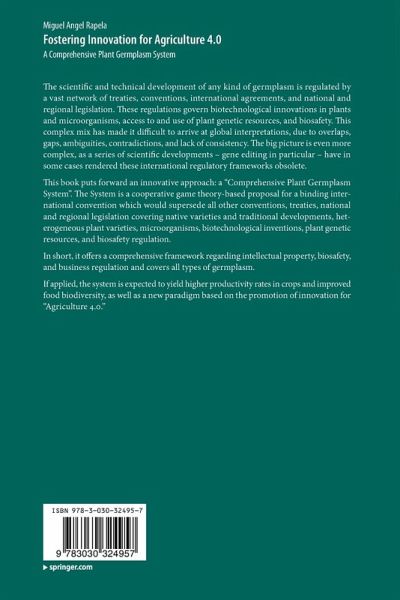 This book puts forward an innovative approach: a "Comprehensive Plant Germplasm System". The System is a cooperative game theory-based proposal for a binding international convention which would supersede all other conventions, treaties, national and regional legislation covering native varieties and traditionaldevelopments, heterogeneous plant varieties, microorganisms, biotechnological inventions, plant genetic resources, and biosafety regulation. In short, it offers a comprehensive framework regarding intellectual property, biosafety, and business regulation and covers all types of germplasm.