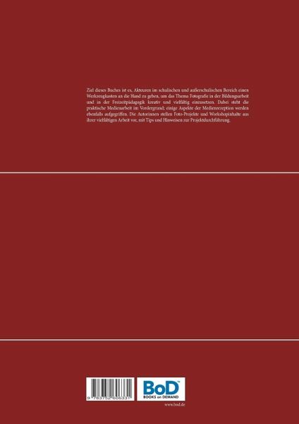 Ziel dieses Buches ist es, Akteuren im schulischen und außerschulischen Bereich einen Werkzeugkasten an die Hand zu geben, um das Thema Fotografie in der Bildungsarbeit und in der Freizeitpädagogik kreativ und vielfältig einzusetzen. Dabei steht die praktische Medienarbeit im Vordergrund; einige Aspekte der Medienrezeption werden ebenfalls aufgegriffen. Die Autorinnen stellen Foto-Projekte und Workshopinhalte aus ihrer vielfältigen Arbeit vor, mit Tips und Hinweisen zur Projektdurchführung.