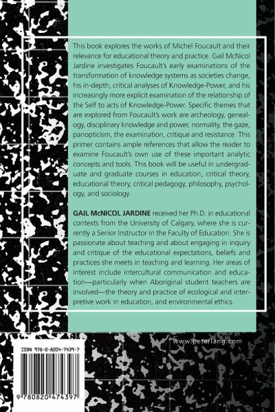 This book explores the works of Michel Foucault and their relevance for educational theory and practice. Gail McNicol Jardine investigates Foucault's early examinations of the transformation of systems of knowledge as societies change, his in-depth, critical analyses of Knowledge-Power, and his increasingly more explicit examination of the relationship of the Self to acts of Knowledge-Power. Specific themes that are explored from Foucault's work are archeology, genealogy, disciplinary knowledge and power, normality, the gaze, panopticism, the examination, critique and resistance. This primer contains ample references that allow the reader to examine Foucault's own use of these important analytic concepts and tools. This book will be useful in undergraduate and graduate courses in education, critical theory, educational theory, critical pedagogy, philosophy, psychology, and sociology.
