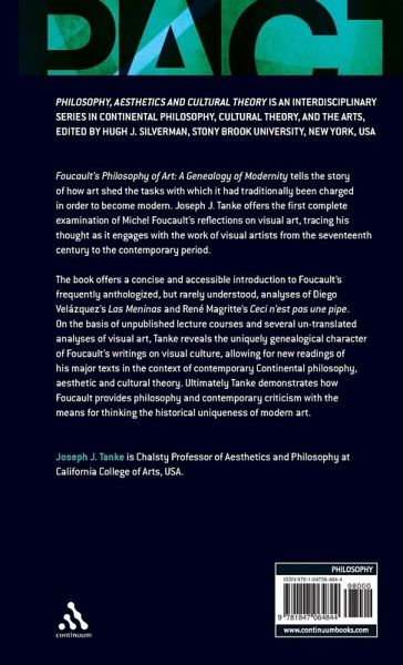 Foucault's Philosophy of Art: A Genealogy of Modernity tells the story of how art shed the tasks with which it had traditionally been charged in order to become modern. Joseph J. Tanke offers the first complete examination of Michel Foucault's reflections on visual art, tracing his thought as it engages with the work of visual artists from the seventeenth century to the contemporary period. The book offers a concise and accessible introduction to Foucault's frequently anthologized, but rarely understood, analyses of Diego Velázquez's Las Meninas and René Magritte's Ceci n'est pas une pipe. On the basis of unpublished lecture courses and several un-translated analyses of visual art, Tanke reveals the uniquely genealogical character of Foucault's writings on visual culture, allowing for new readings of his major texts in the context of contemporary Continental philosophy, aesthetic and cultural theory. Ultimately Tanke demonstrates how Foucault provides philosophy and contemporary criticism with the means for determining a conception of modern art.