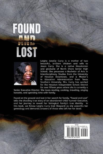 Found and Lost is the shocking true story of an abandoned child turned executive, and her journey to reveal her biological family's true identity. In this book, we follow Leigha Janelle Curry (Neé Shepard) as she unearths her genealogy and demands answers of those who left her for dead at birth.
