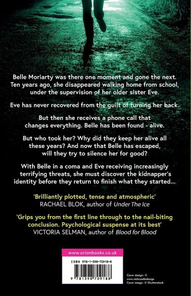 The most gripping, emotional and redemptive psychological thriller of 2021 - for fans of Erin Kinsley, Lisa Jewell, Louise Jensen, Phoebe Morgan, CL Taylor, Cara Hunter and KL Slater... 'Dark, gripping, unexpected. Insanely good - like, Dark Places good' ELLE CROFT, author of The Guilty Wife 'Brilliantly plotted, tense and atmospheric. You will doubt and suspect everyone. Loved it' RACHAEL BLOK, author of Under The Ice 'Grips you from the first line through to the nail-biting conclusion. Psychological suspense at its best' VICTORIA SELMAN, author of Blood for Blood 'I binge read this clever, unexpected, brilliantly plotted thriller because I literally could not put it down. Incredible' CLARE EMPSON, author of HIM ************** Belle Moriarty was there one moment and gone the next. Ten years ago, she disappeared walking home from school, under the supervision of her older sister Eve. Eve has never recovered from the guilt of turning her back. But then she receives a phone call that changes everything. Belle has been found - alive. But who took her? Why did they keep her alive all these years? And now that Belle has escaped, will they try to silence her for good? With Belle in a coma and Eve receiving increasingly terrifying threats, she must discover the kidnapper's identity before they return to finish what they started... ************** Praise for NIKI MACKAY: 'A punchy, pacy thriller - I devoured it in a single day' HELEN CALLAGHAN 'Absolutely gripping' DAME JENNI MURRAY 'Totally engaging, fast paced and edgy...completely captivating' ELLE CROFT 'I couldn't put it down...a must read...Niki is brilliant and talented' PHOEBE MORGAN 'As addictive as Killing Eve' THE LADY 'Had me hooked within two pages - every bit as much appeal as The Girl On The Train' ROBERT SCRAGG 'A humdinger of a thriller...a maze of lies, deceit and danger' EVENING TELEGRAPH