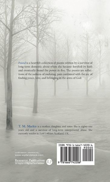 Found is a heartfelt collection of poems written by a survivor of long-term domestic abuse when she became fortified by faith and eventually found the power to flee. The poems are reflections of the sadness of enduring pain combined with the joy of finding peace, love, and belonging in the arms of God.