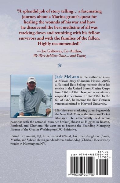 Fascinating journey about a Marine grunt's quest for healing the wounds of his war and how he discovered the best medicine of all was tracking down and reuniting with his fellow survivors and with the families of the fallen.