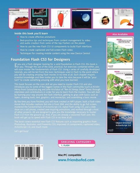 Learn Flash design from the ground up, or just get to grips with the new features, with a series of step by step tutorials Provides an easy introduction to ActionScript 3.0 coding, but the focus is mainly kept on design Learn from the experts: written by renowned Flash designers Tom Green and David Stiller