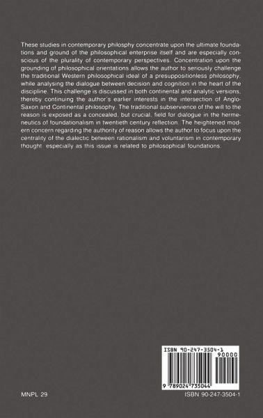 The American University Publications In From its inception Philosophy has continued the direction stated in the sub-title of the initial volume that of probing new directions in philosophy. As the series has developed these probings of new directions have taken the two fold direction of exploring the relationships between the disparate traditions of twentieth century philosophy and with developing new insights into the foundations of some enduring philosophic problems. This present volume continues both of these directions. The interaction between twentieth-century Anglo-Saxon and Continental philosophy which was an implicit theme of our first and third volumes and the explicit subject of our second volume is here continued in a series of studies on major figures and topics in each tradition. In the context of these interpretative studies, Professor Durfee returns again and again to the question of the relationships between the will and the reason, and explores the conflicting goals of creativity and objectivity in formulating a philosophic position. In so doing he raises the issue as his title suggests - of the foundations of philosophy itself. He seriously challenges the belief common to both pheomenology and analytic philosophy that philosophizing can be a presuppositionless activity, objectively persued independent of the personal (and, perhaps, arbitrary) commitments of the philosopher. This issue, critical as it is to all forms of philosophy, is surely a worthy one for a series such as ours.