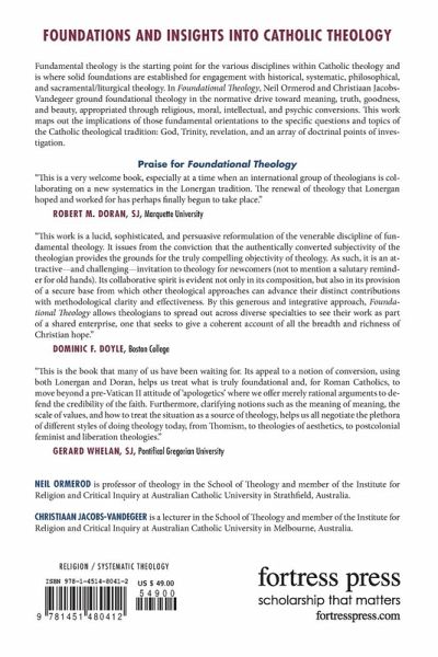 Fundamental theology is the starting point for the various disciplines within Catholic theology and is where solid foundations are established for engagement with historical, systematic, philosophical, and sacramental/liturgical theology. In Foundational Theology, Neil Ormerod and Christiaan Jacobs-Vandegeer ground foundational theology in the normative drive towards meaning, truth, goodness, and beauty, appropriated through religious, moral, intellectual, and psychic conversions. The work maps out the implications of those fundamental orientations to the specific questions and topics of the Catholic theological tradition: God, Trinity, revelation, and an array of doctrinal points of investigation.