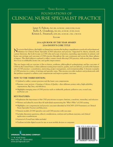 Now in its third edition, this acclaimed text is the leading textbook and reference for Clinical Nurse Specialist (CNS) education and practice. It focuses on CNS roles and scope of practice; expanding opportunities in primary and homecare settings; and outcomes of CNS practice throughout the care continuum and across the three spheres of impact.