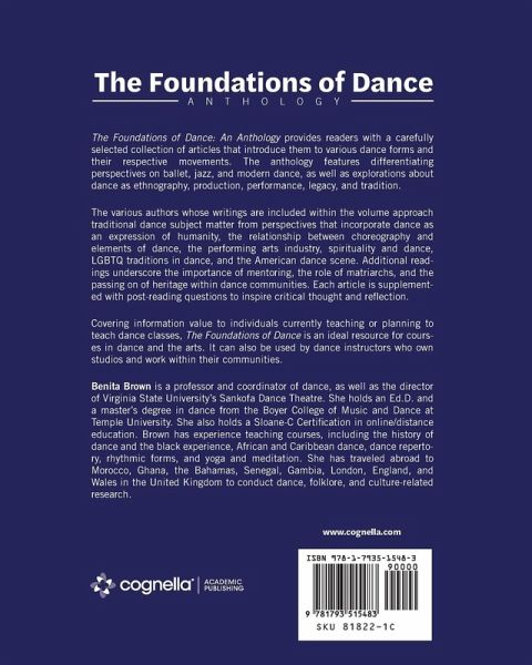 The Foundations of Dance: An Anthology provides readers with a carefully selected collection of articles that introduce them to various dance forms and their respective movements. The anthology features differentiating perspectives on ballet, jazz, and modern dance, as well as explorations about dance as ethnography, production, performance, legacy, and tradition. The various authors whose writings are included within the volume approach traditional dance subject matter from perspectives that incorporate dance as an expression of humanity, the relationship between choreography and elements of dance, the performing arts industry, spirituality and dance, LGBTQ traditions in dance, and the American dance scene. Additional readings underscore the importance of mentoring, the role of matriarchs, and the passing on of heritage within dance communities. Each article is supplemented with post-reading questions to inspire critical thought and reflection. Covering information value to individuals currently teaching or planning to teach dance classes, The Foundations of Dance is an ideal resource for courses in dance and the arts. It can also be used by dance instructors who own studios and work within their communities.