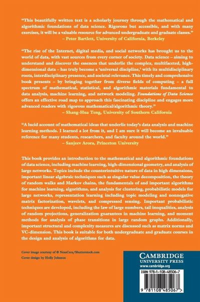 This book is aimed towards both undergraduate and graduate courses in computer science on the design and analysis of algorithms for data. The material in this book will provide students with the mathematical background they need for further study and research in machine learning, data mining, and data science more generally.