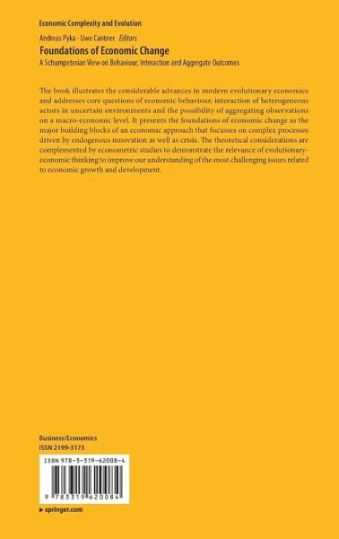 Introduction.- Part 1 Foundations of Economic Change.- Foundations of economic change-an extended Schumpeterian approach.- Behavior and Cognition of Economic Actors in Evolutionary Economics.- Upward and downward complementarity: The meso core of evolutionary growth theory.- Part 2: Aggregate Outcomes.- Global Dynamics, Capabilities and the Crisis.- Convergence or Divergence: A Nonparametric Analysis on China's Regional Disparity.- Micro to Macro Evolutionary Modeling - On the economics of self-organization of dynamic markets by ignorant actors.- Firms Navigating Through Innovation Spaces: A Conceptualization.- A Proposal for a 'National Innovation System plus Subjective Well Being' Approach and an Evolutionary Systemic Normative Theory of Innovation.- Part 3: Behaviour.- The reason why seemingly fit firms do not necessarily grow: Confounded economic selection and how to measure it.- The roots of growth: entrepreneurship, innovation and the capitalist firm.- The Journey of Innovation From Incremental to Radical Innovation and High-Tech Innovation Cascades.- Schumpeterian incumbents and industry evolution.- Incremental by Design? On the Role of Incumbents in Technology Niches An Evolutionary Network Analysis.- Entrepreneurs' Overoptimism during the early Life Course of the Firm.- Part 4: Interaction.- Knowledge Spillovers through FDI and Trade: Moderating Role of Quality Adjusted Human Capital.- Export, R&D and New Products. A Model and a Test on European Industries.- Using Simulation Experiments to Test Historical Explanations: The Development of the German Dye Industry 1857-1913.- From the Marshallian search for Equilibrium to Schumpeterian Dynamics. A Simulation Model.- Understanding the complex nature of innovation network evolution.- Why Does Sports Equipment Sometimes Become Too Sophisticated and Expensive? : A Case Study of the Overshooting Hypothesis in Board Sports.