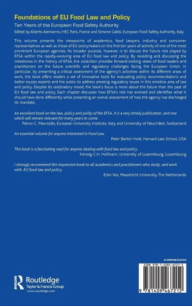 This volume presents the viewpoints of academics, food lawyers, industry and consumer representatives as well as those of EU policymakers on the first ten years of activity of one of the most prominent European agencies. Its broader purpose, however, is to discuss the future role played by EFSA within the rapidly-evolving area of EU food law and policy. By revisiting and discussing the milestones in the history of EFSA, the collection provides forward-looking views of food leaders and practitioners on the future scientific and regulatory challenges facing the European Union.