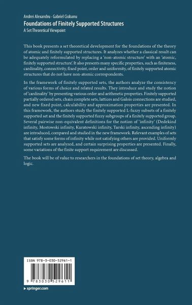 This book presents a set theoretical development for the foundations of the theory of atomic and finitely supported structures. It analyzes whether a classical result can be adequately reformulated by replacing a 'non-atomic structure' with an 'atomic, finitely supported structure'. It also presents many specific properties, such as finiteness, cardinality, connectivity, fixed point, order and uniformity, of finitely supported atomic structures that do not have non-atomic correspondents.