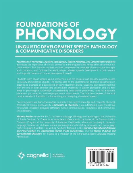 Foundations of Phonology: Linguistic Development, Speech Pathology, and Communicative Disorders addresses the importance of clinical phonetics in the diagnosis and remediation of communicative disorders. This introductory text provides comprehensive coverage of foundational concepts and constructs, and outlines the relationships between speech development in both motoric and linguistic terms and human development overall. Students learn about speech sound production, and the physical and acoustic properties used to classify and describe sounds. The text focuses on the importance of phonetic transcription in diagnosing disorders and developing effective treatment plans. Students also become familiar with the role of coarticulation and assimilation processes in speech production and the four areas of phonological knowledge: understanding constrastive phonemes, rules for allophonic variations, phonotactics, and morphophonemic adjustments. The final two chapters of the book provide detailed information on transcribing and analyzing disordered speech. Featuring exercises that allow readers to practice the target knowledge and concepts, the book emphasizes clinical applicability. Foundations of Phonology is an outstanding instructional tool for courses in speech-language pathology, human communication, linguistics, and communicative disorders. Kimberly Frazier earned her Ph.D. in speech-language pathology and audiology at the University of South Caroline. Dr. Frazier is an associate professor and coordinator of the Communication Disorders Program at the University of Arkansas, Fayetteville, where she has taught courses in language disorders in children, normal phonology and articulatory processes, and social-pragmatic language disorders. Her writing has been featured in the Journal of Educational Research and Policy Studies, the International Journal of Arts and Sciences, and the Journal of Autism and Developmental Disorders. Dr. Frazier is a member of the American Speech-Language-Hearing Association.